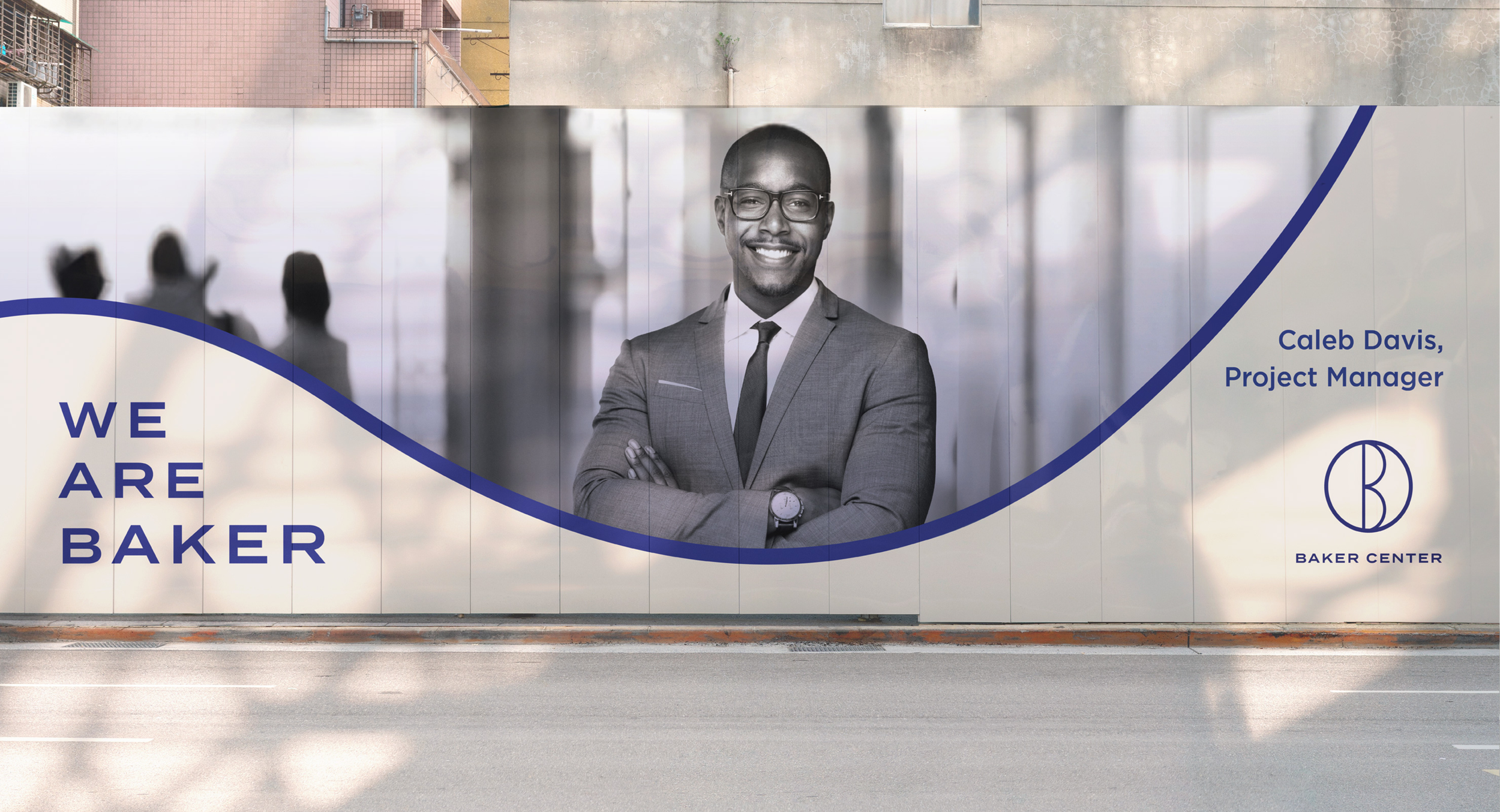 The system introduces a clear naming and color strategy across Baker 1 through 4, supported by signage and wayfinding concepts designed to improve clarity while reinforcing brand consistency. A key element of the direction was human-centered storytelling, featuring real roles within the Baker Center ecosystem, from baristas and engineers to architects, executives, and local business owners, to visually represent community without relying on corporate language. The identity was explored across a full range of applications, including environmental signage, community billboards, email and social campaigns, Instagram content, and a reimagined lobby video concept titled “Soul of the City.” The result is a warm, authentic, and modern property brand that breaks from conventional real estate marketing and reflects Baker Center as a living, connected community.