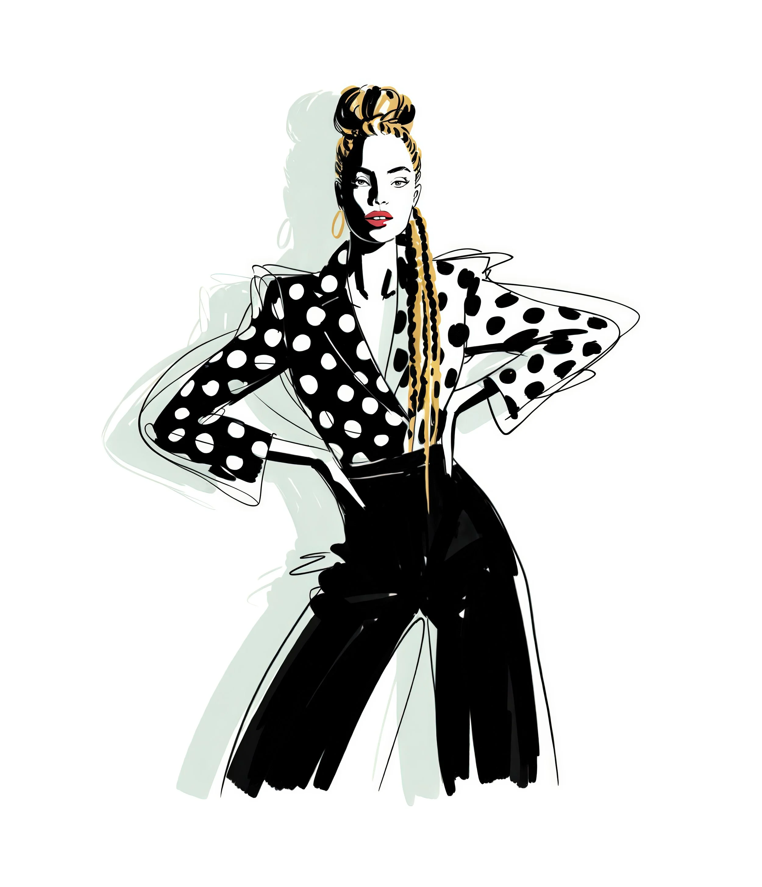 Outside of my graphic design work, I’ve always had a deep love for fashion illustration and abstract art. It’s a space where I get to play, experiment, and create purely for the joy of it. I love capturing movement, attitude, and style with expressive lines and bold shapes—turning a glance or a silhouette into something alive on the page.
