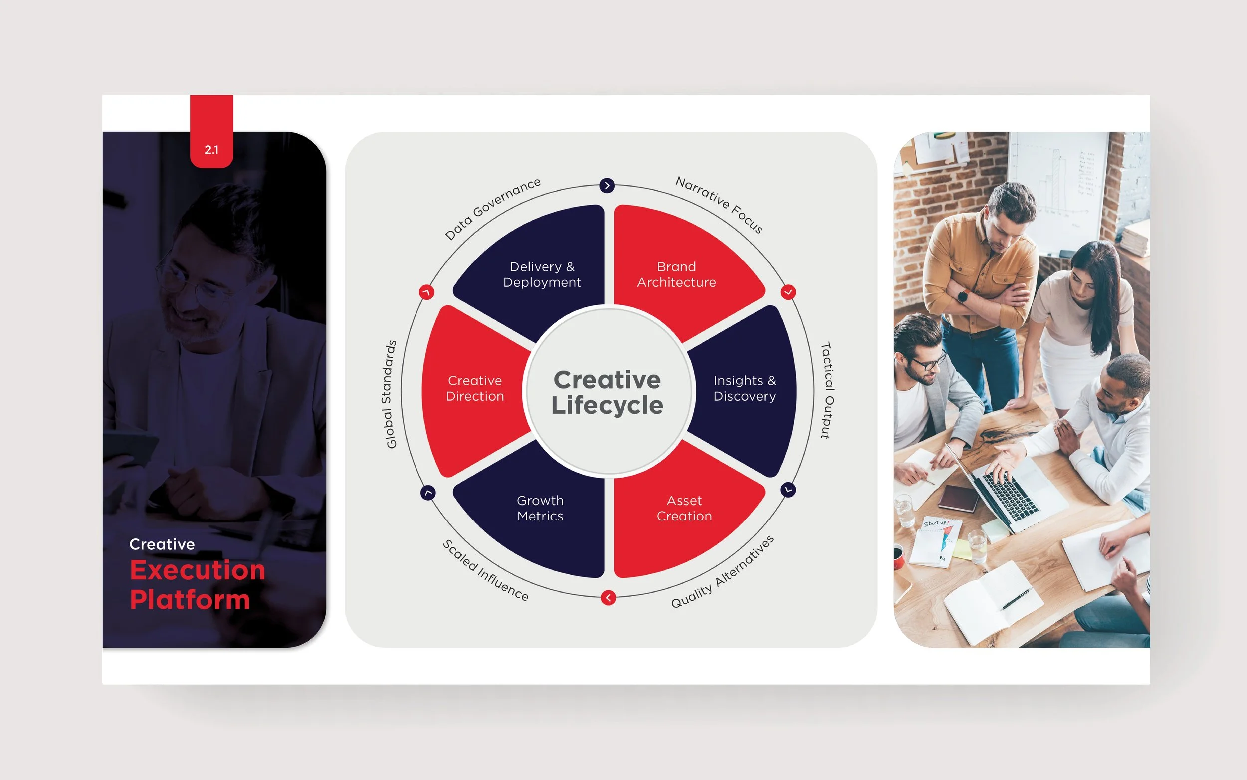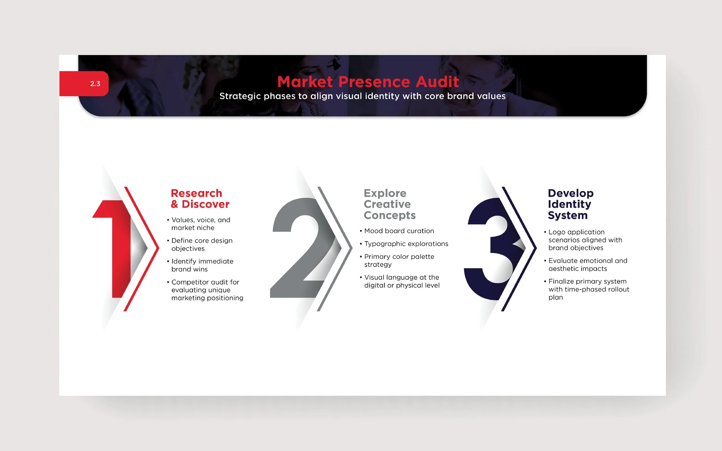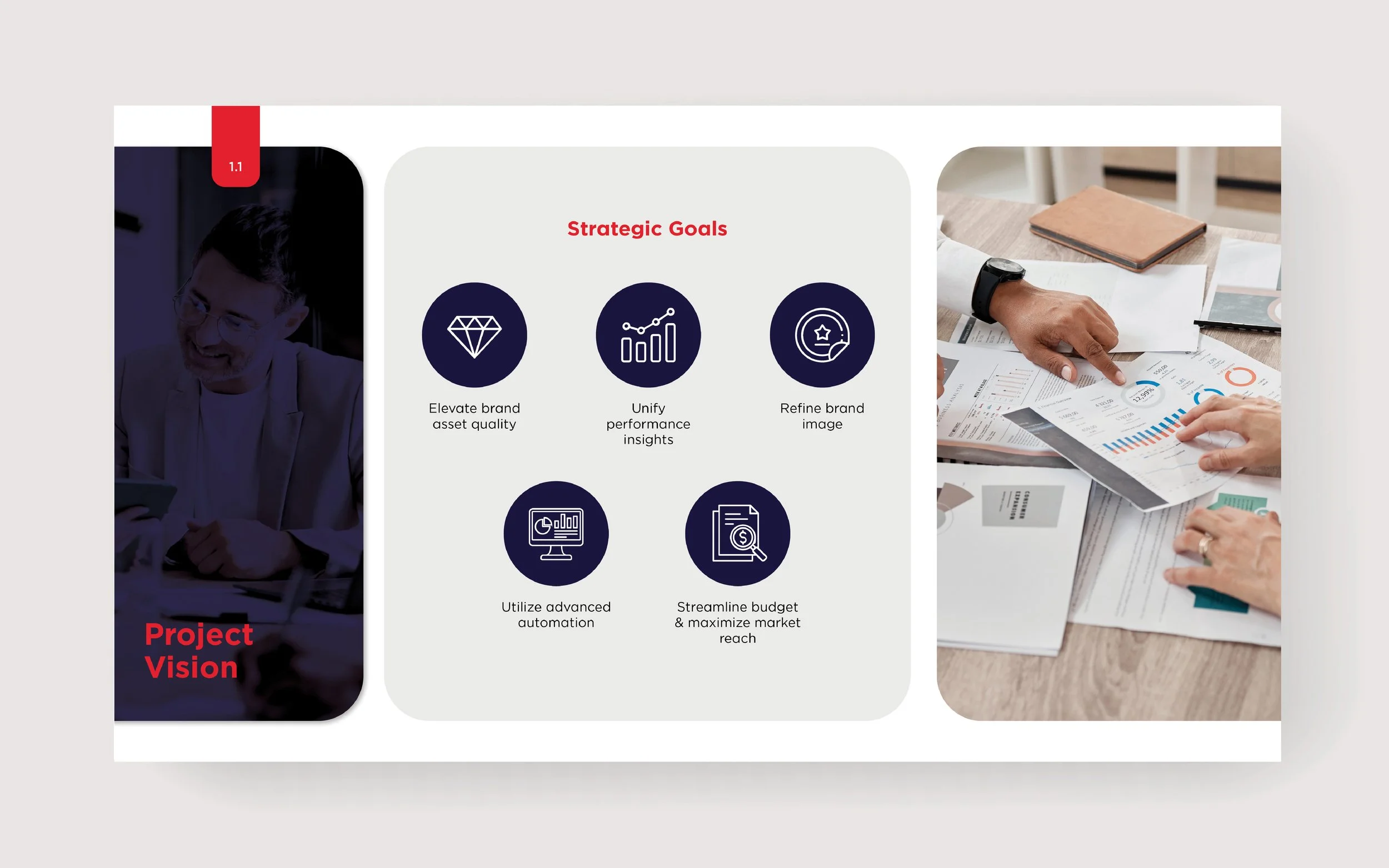 Rocket Mortgage engaged Cushman & Wakefield to develop a centralized strategic framework as the parent company sought to unify the disparate real estate operations and data sets of its rapidly expanding portfolio. I led the visual direction and presentation design, creating a structured narrative that transformed fragmented acquisition data into a cohesive, "bespoke" execution model designed to appeal to a singular group of executive decision-makers. To contrast the client's internal organizational complexity, the design utilized a transparent, grid-based system and a sophisticated palette that signaled precision, agility, and a consultative partnership. The visual strategy was delivered through a high-impact digital presentation and a professionally designed trifold leave-behind, which together positioned the firm as a personable, design-conscious alternative to traditional "big-box" competitors. This multi-format approach effectively demonstrated how tailored visual storytelling can bridge the gap between fragmented information and visionary intelligence, ultimately presenting a clear, scalable roadmap for a unified corporate future.